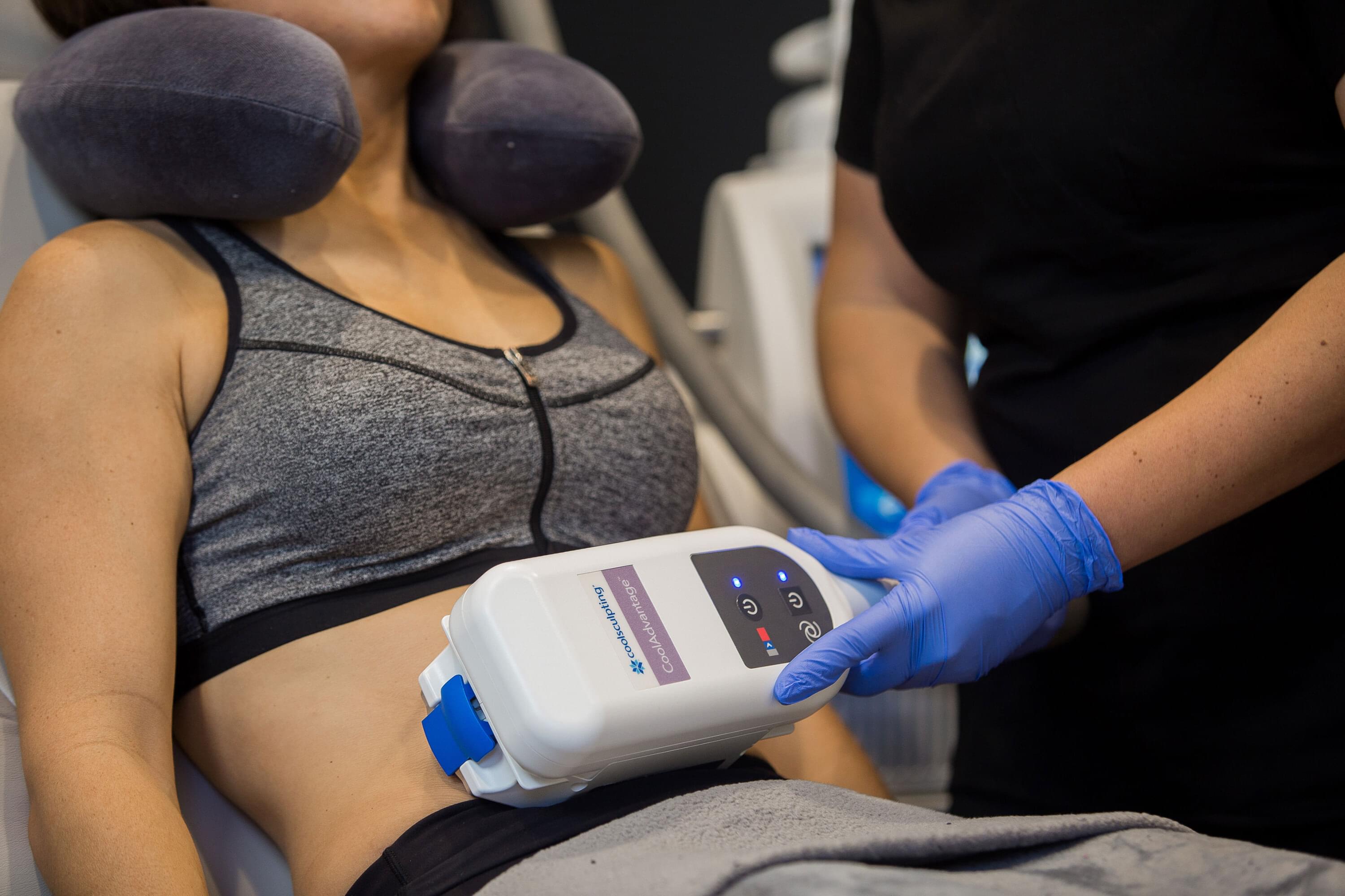 During your treatment, a gel pad and applicator are applied to the targeted area. Applicators use a vacuum to draw the tissue into the applicator cup. You may feel pulling, tugging, and mild pinching. Controlled cooling is then delivered to the targeted fat so you may feel intense cold, but this sensation typically subsides within 10 minutes as the area becomes numb. Many people read, check email, or even take a nap during their sessions.